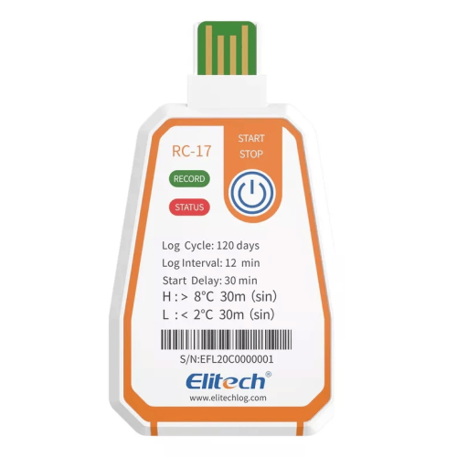 Elitech RC-17 es un registrador electrónico de datos de temperatura utilizado en camiones, bolsas o contenedores refrigerados.