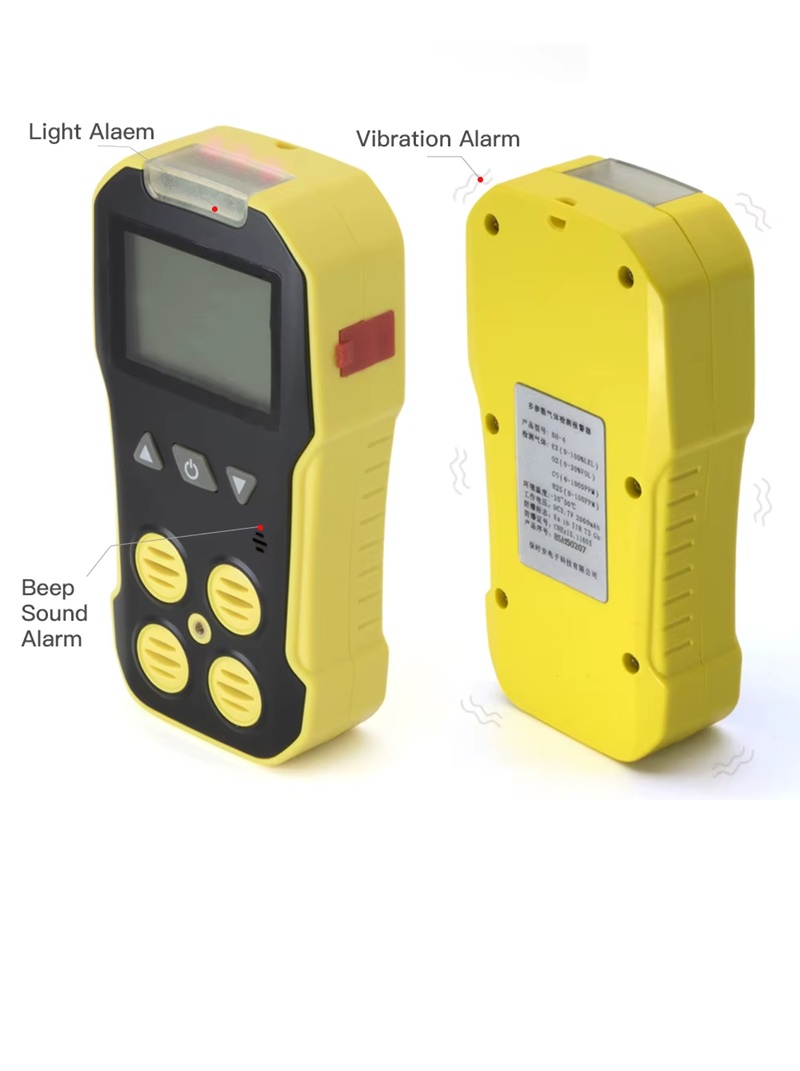 Medidor de 4 gases mide gases como monóxido de carbono (CO), oxígeno (O₂), sulfuro de hidrógeno (H₂S) y combustibles (EX). Cuando la calidad del aire se ve comprometida, estos dispositivos se utilizan para la protección personal. Ejemplos de entornos con gases peligrosos incluyen espacios confinados como tanques, recipientes.